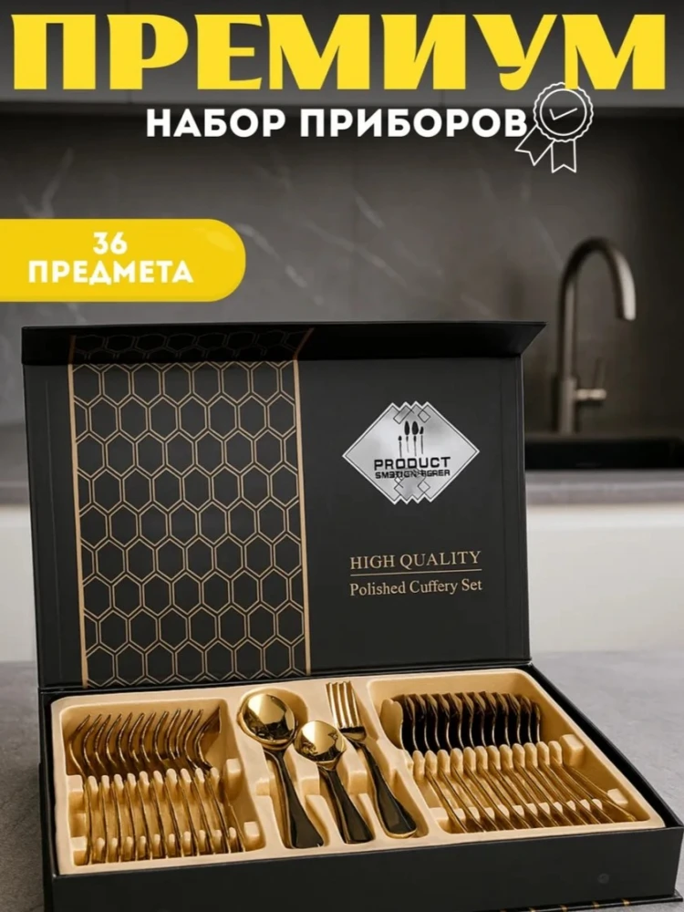 Набор столовых приборов золото...