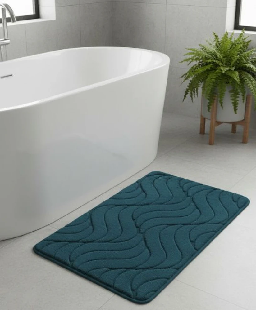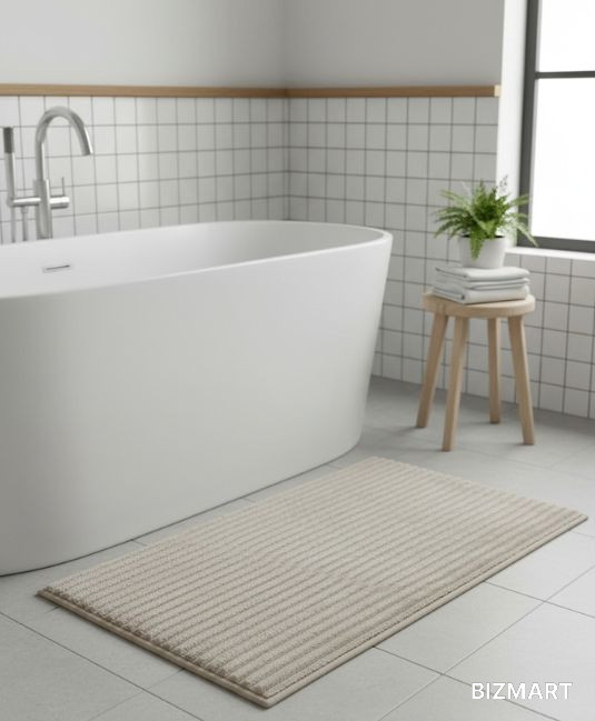 Удобный и практичный коврик для ванной комнаты с мягкой ребристой поверхностью. Быстро впитывает влагу, сохраняя пол сухим и чистым. Приятный на ощупь материал обеспечивает комфорт после душа, а противоскользящая основа гарантирует безопасность при использовании.