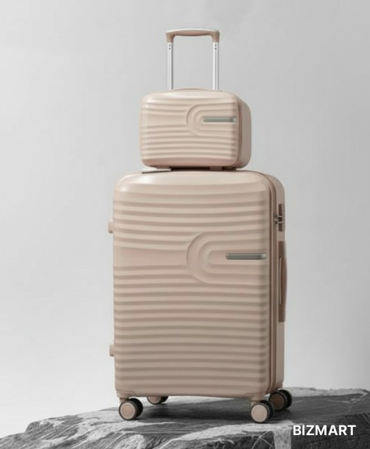 Комплект включает большой чемодан размера XL и компактную косметичку-сумку. Корпус выполнен из прочного пластика, устойчивого к царапинам и ударам.