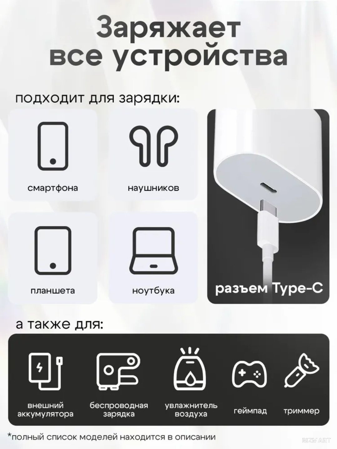 Идеально подходит для современных гаджетов — iPhone, Samsung, Xiaomi, Huawei и других устройств с разъёмом Type-C.