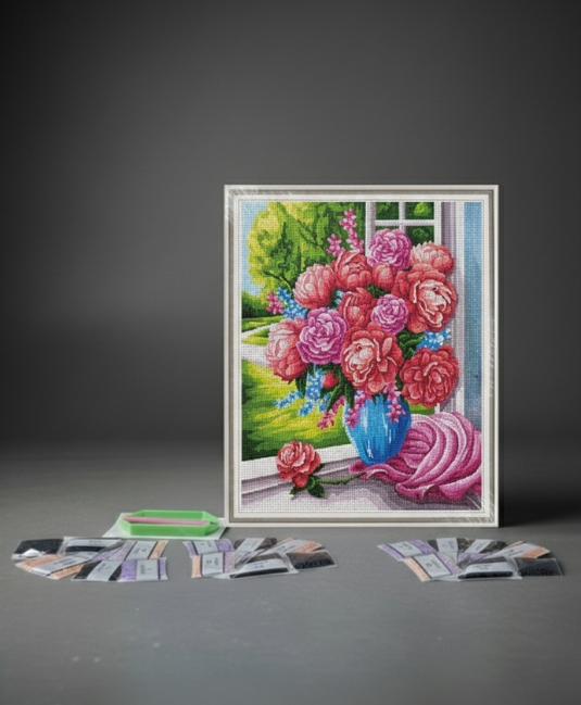 Холст с клеевым слоем и схемой: Высококачественный холст с ярким и четким рисунком, покрытый надежным клеевым слоем и защитной пленкой.