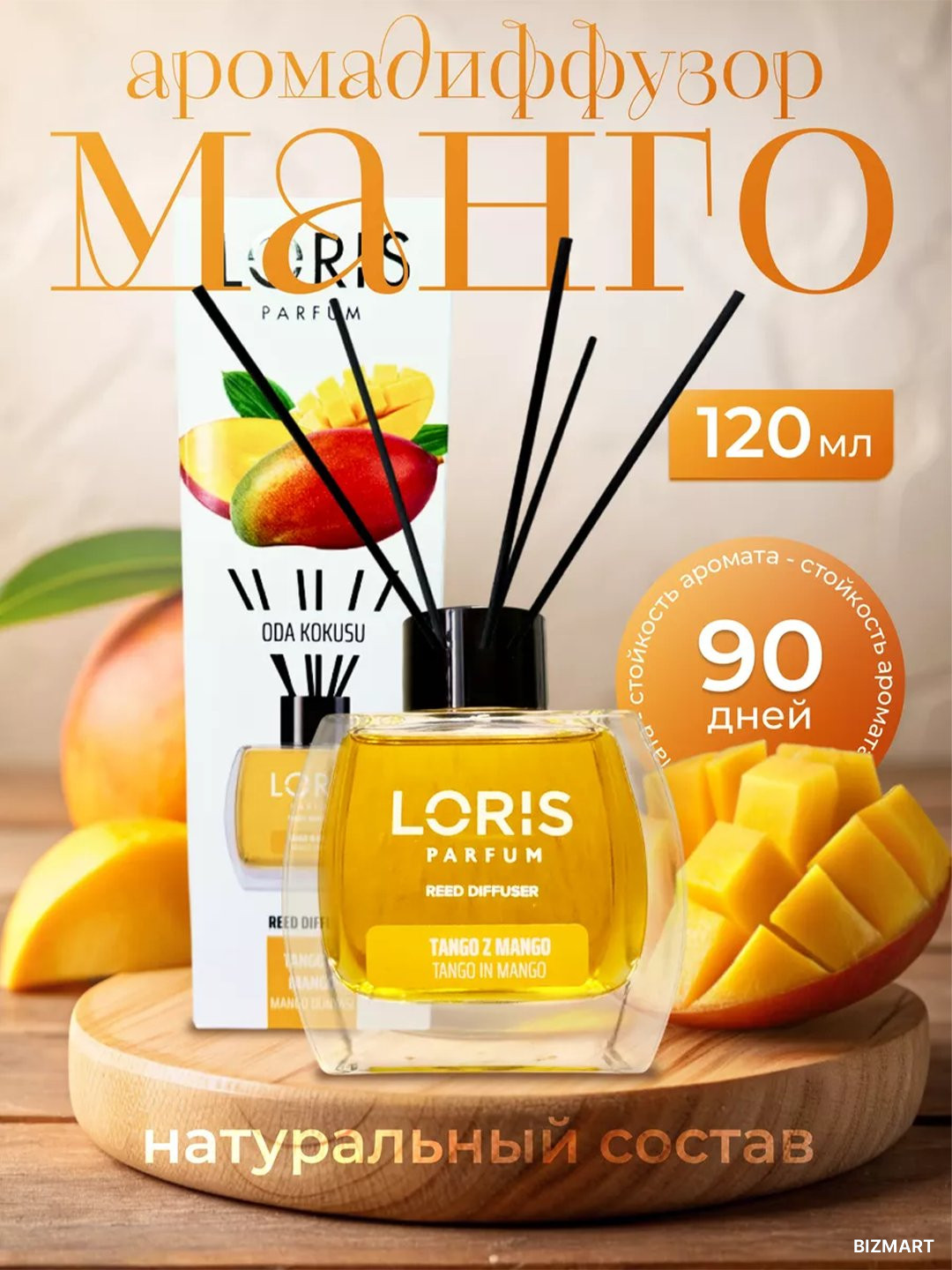 Аромадиффузор для дома, офиса, магазина и автомобиля, 120 мл, Loris Parfum Mango