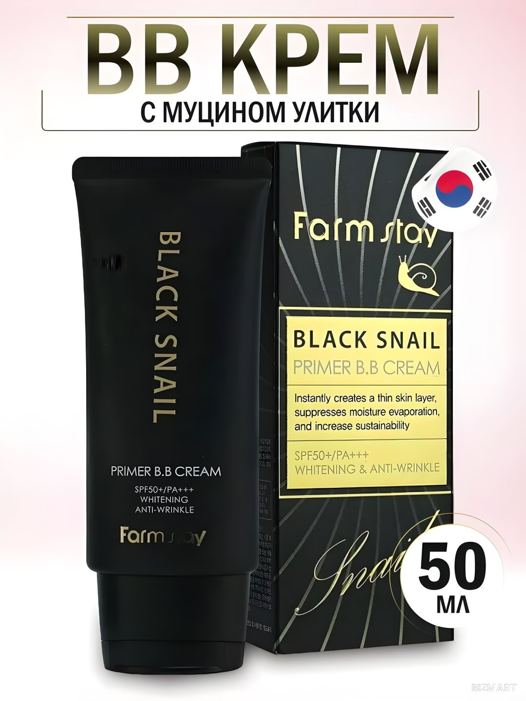 нтивозрастной BB-крем с экстрактом черной улитки Farmstay Black Snail Primer BB Cream идеально выравнивает тон кожи, скрывает все несовершенства, осветляет кожу, защищает от вредного воздействия УФ-излучений и предотвращает появление морщинок. Крем создает естественное покрытие и обеспечивает необходимое увлажнение и препятствует увяданию кожи, придает лицу здоровый и ухоженный вид.