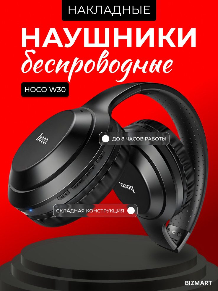 Накладные наушники Hoco W30 — практичное решение для музыки, звонков и работы. Модель поддерживает два варианта подключения: по Bluetooth 5.0 и через кабель 3,5 мм, что удобно при разряженной батарее. Динамики 40 мм обеспечивают сбалансированное звучание с хорошими басами и чистыми высокими частотами.