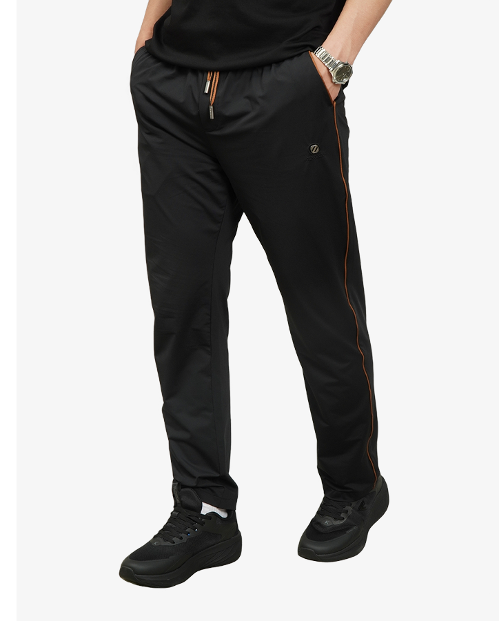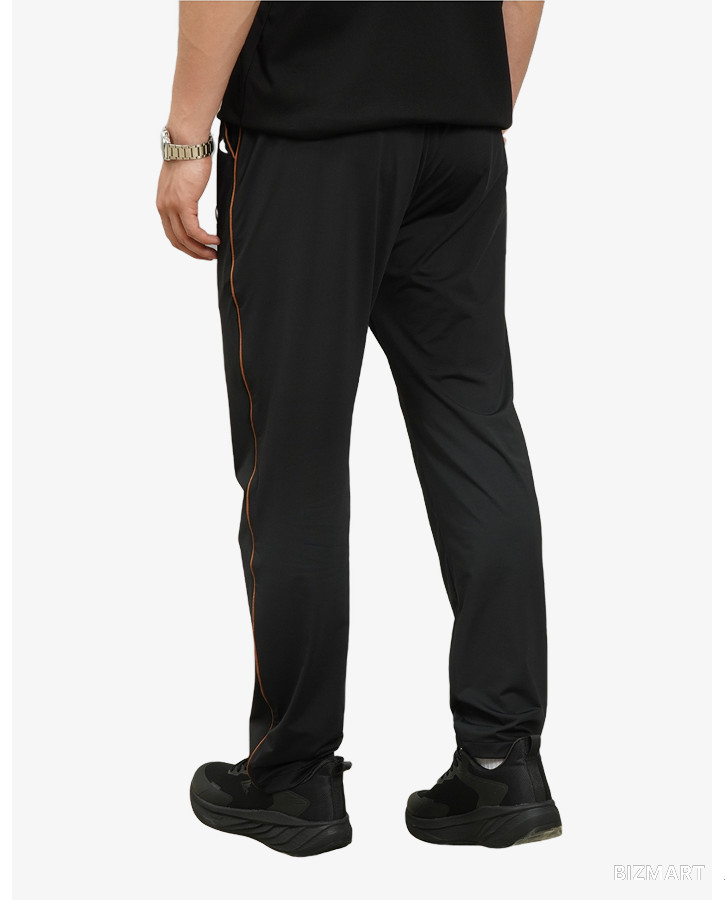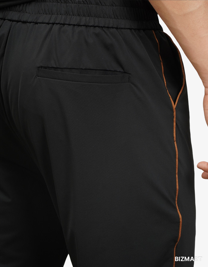 Продуманный дизайн: Элегантный черный цвет дополнен тонкими контрастными линиями вдоль швов и на карманах, что визуально вытягивает силуэт.
