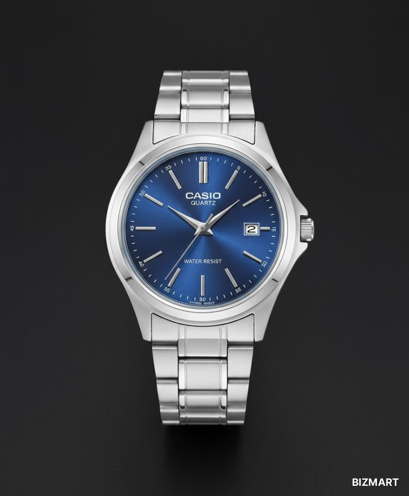 Стильные и надежные наручные часы Casio Quartz — универсальная модель для тех, кто ценит классический дизайн и практичность. Элегантный синий циферблат с эффектом солнечных лучей подчеркивает статус владельца, а стальной корпус и браслет придают часам солидность и долговечность.