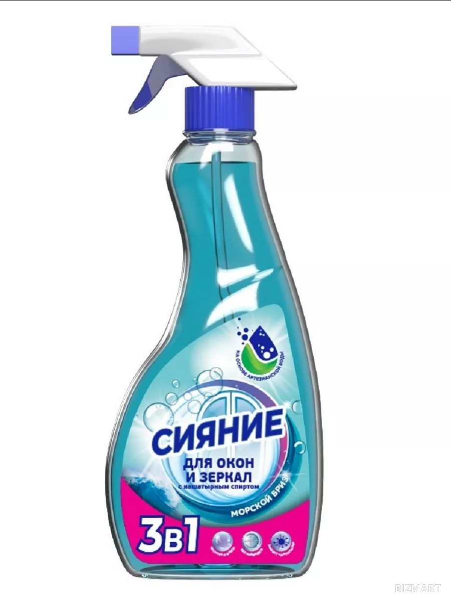 Эффективное средство для чистки стеклянных поверхностей. Подходит для окон, зеркал, витрин и других гладких поверхностей. Содержит нашатырный спирт, благодаря чему быстро удаляет загрязнения, жирные следы и налёт, не оставляя разводов. Оставляет свежий аромат морского бриза.