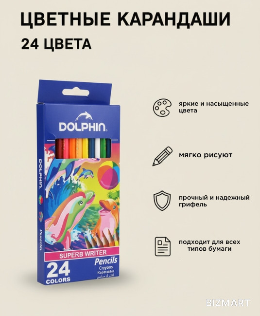 Набор цветных карандашей Dolphin Superb Writer — это идеальный инструмент для творчества, который вдохновит как детей, так и взрослых! В комплекте 24 ярких и насыщенных цвета, позволяющих создавать красочные рисунки и воплощать любые идеи.