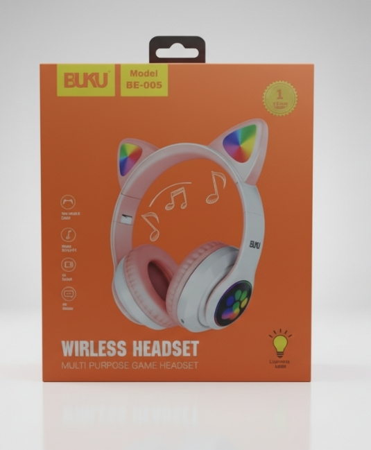 Заряжай настроение вместе с BUKU BE-005 — стильными наушниками с кошачьими ушками и яркой RGB-подсветкой! 🐱✨