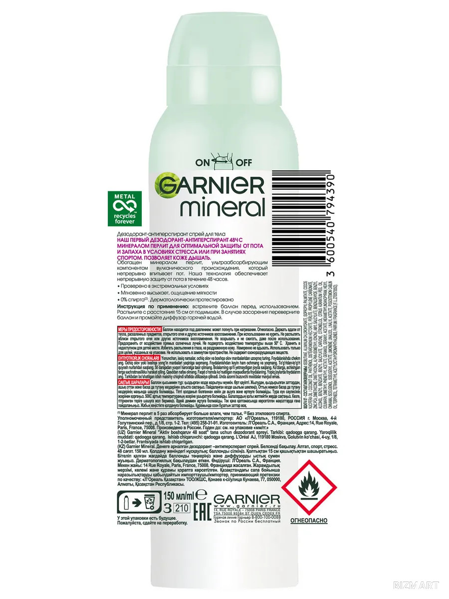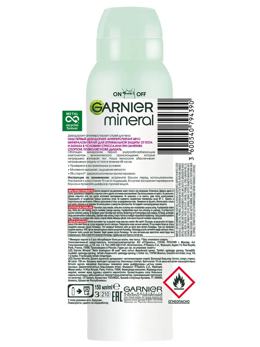 Дезодорант-антиперспирант обогащен минералом перлит. Защита от потоотделения. Позволяет коже дышать.