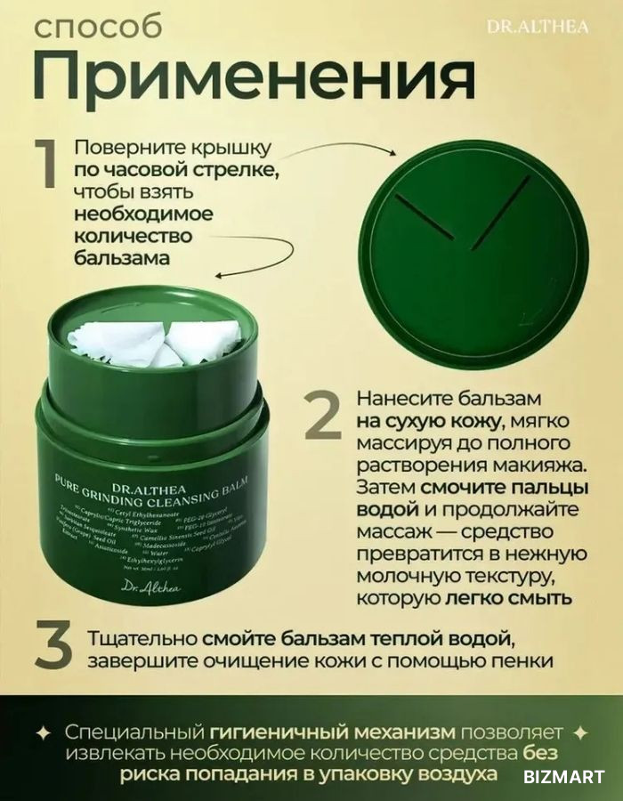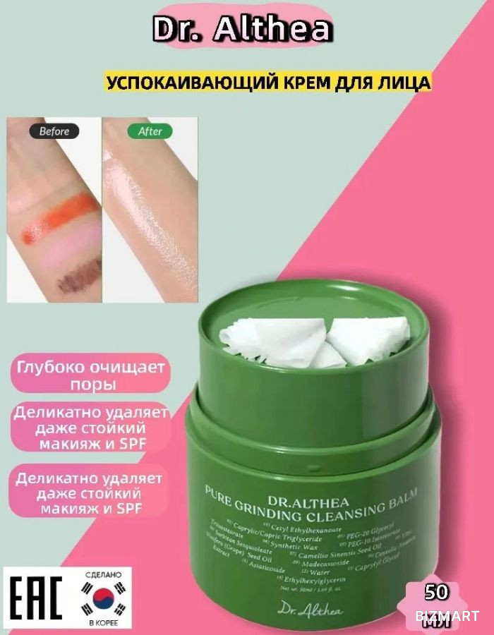 Очищающий бальзам Dr. Althea Pure Grinding Cleansing Balm предназначен для деликатного, но эффективного очищения кожи лица. Средство мягко растворяет макияж, солнцезащитные средства (SPF) и повседневные загрязнения, не нарушая естественный баланс кожи.