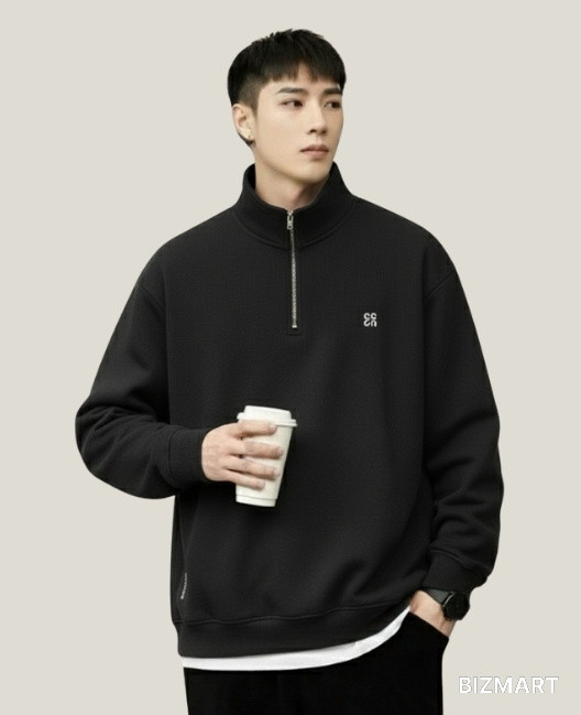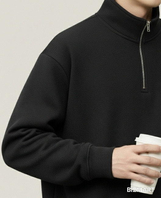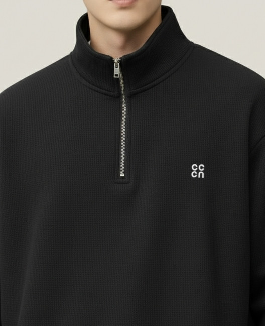 Джемпер-полузамок QC мужской — классика, которая всегда в моде. Чёрный цвет делает модель универсальной: легко сочетается с любой одеждой, подчёркивает стиль и добавляет строгости образу. Воротник-стойка с молнией до середины груди обеспечивает комфорт и современный акцент.