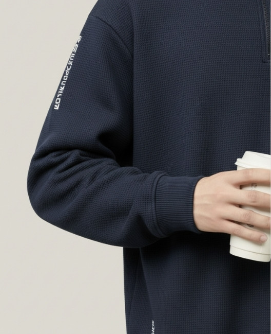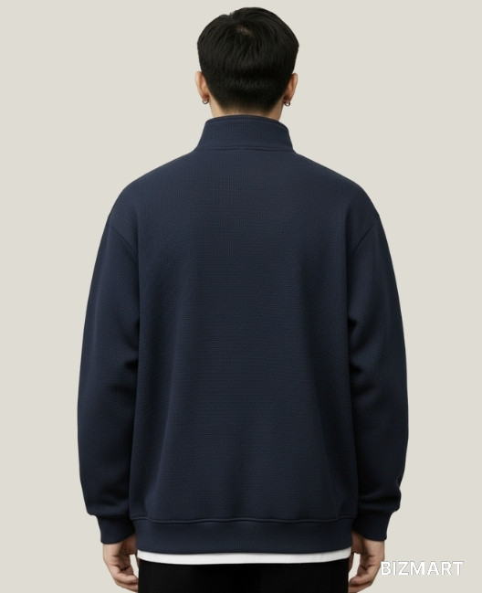 Мужская кофта QC — сочетание универсального дизайна и комфорта. Воротник-стойка с удобной молнией до середины груди создаёт современный акцент и позволяет регулировать посадку под погоду и настроение. Глубокий тёмно-синий оттенок подчеркнёт ваш стиль и легко впишется в любой гардероб.