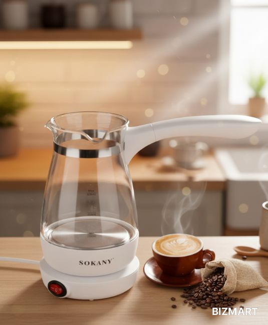 Электрическая кофеварка Sokany YLW-607 — удобная и компактная турка с эргономичной складной ручкой из термостойкого пластика.