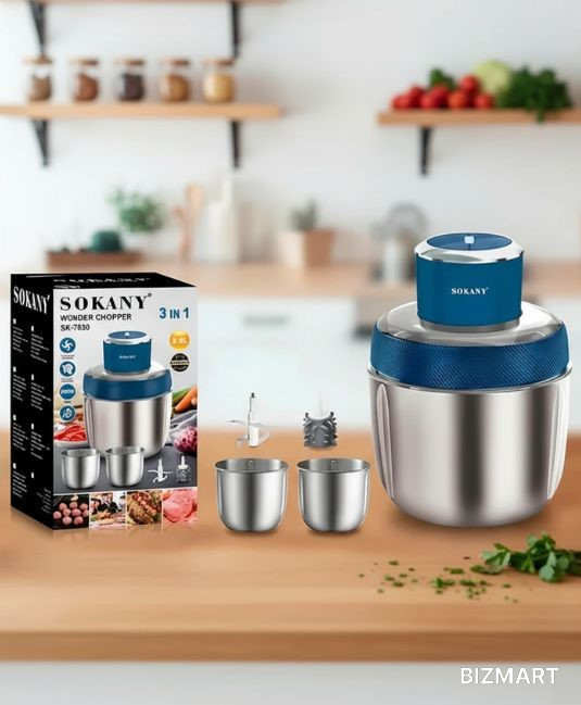 В наборе 3 насадки: для измельчения овощей, приготовления фарша и универсальная.