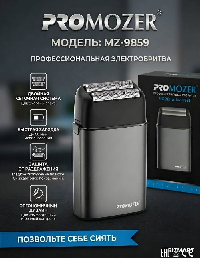 Электробритва PROMOZER MZ-9859 — это компактное и эффективное решение для ежедневного бритья. Модель оснащена двойной сеточной системой, которая обеспечивает максимально чистое и гладкое удаление щетины без лишнего давления на кожу.