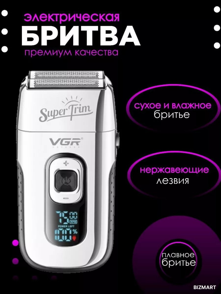 Беспроводная электробритва для сухого бритья лица и тела. Подходит для ухода за бородой, усами и контурами.