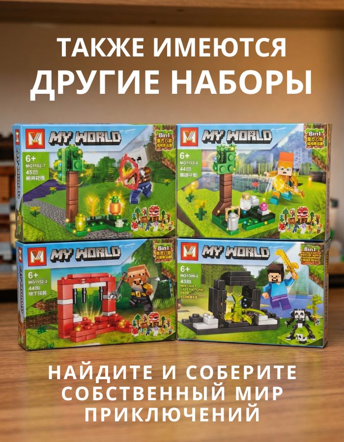 Серия детских конструкторов MY WORLD — это увлекательные игровые наборы, с помощью которых ребёнок может собрать собственный мир приключений. Каждый набор представляет отдельную сцену и может использоваться как самостоятельно, так и в сочетании с другими конструкторами серии.