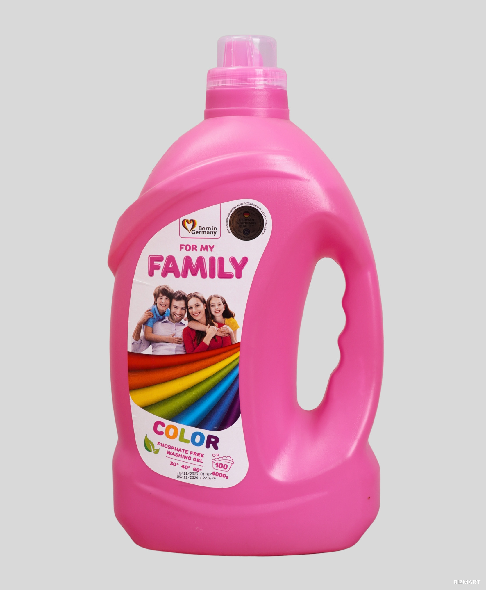 Гель для стирки For My Family Color — эффективное и бережное средство для цветного белья. Подходит для автоматической и ручной стирки при температуре от 30° до 60°C. Благодаря своей формуле без фосфатов сохраняет яркость тканей и заботится о коже.