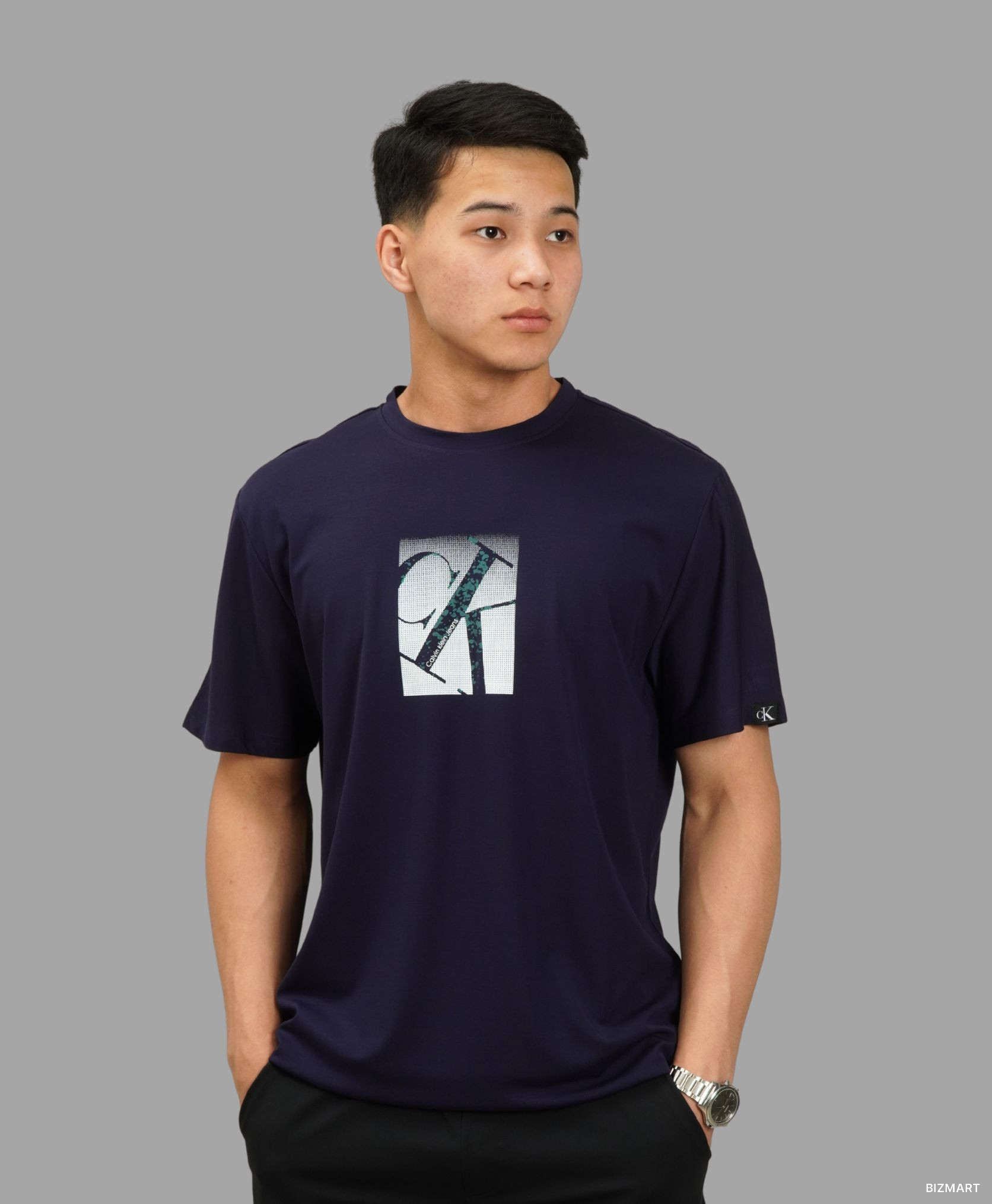 Тёмно-синяя футболка с логотипом Calvin Klein – стильный базовый элемент гардероба