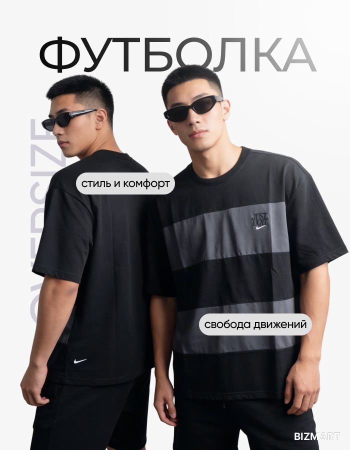 Стильная мужская футболка с оригинальным дизайном в широкую горизонтальную полоску. Сочетание классического черного и глубокого серого цветов создает динамичный образ, подходящий как для занятий спортом, так и для активной городской жизни.