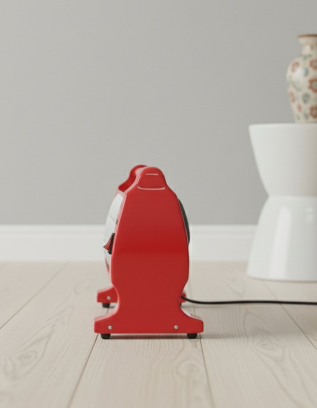 Модель выполнена в стильном корпусе ярко-красного цвета и оснащена удобным выключателем. Устойчивые ножки обеспечивают надёжное положение, а компактный размер позволяет легко перемещать обогреватель и хранить его.