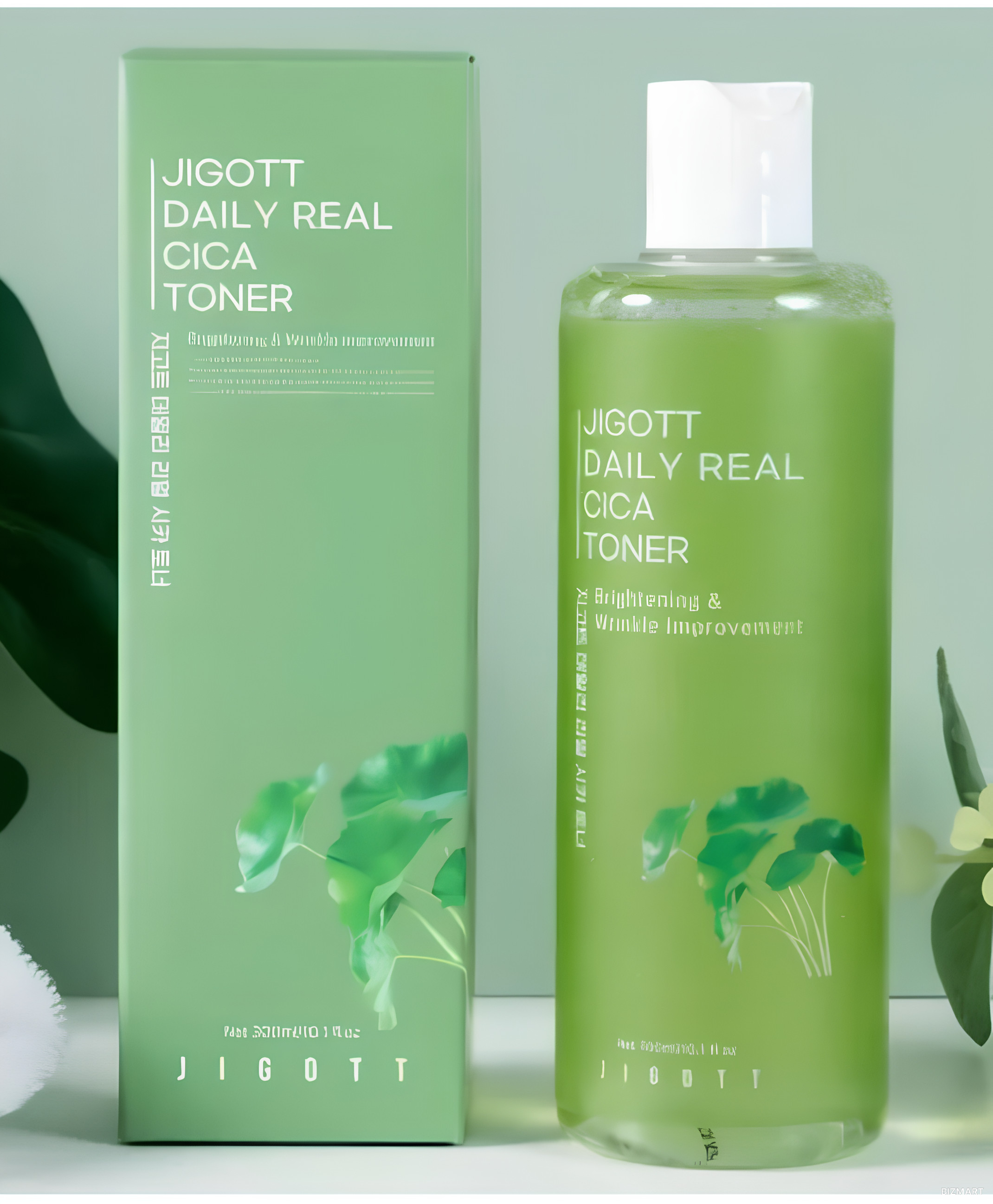 Успокаивающий тонер с центеллой Jigott Daily Real Cica Toner снижает чувствительность кожи, убирает красноту и дискомфорт.