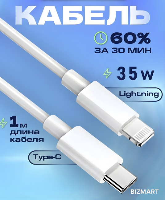 Универсальный кабель Type-C — Lightning мощностью 35 Вт обеспечивает быструю и безопасную зарядку устройств Apple. Совместим со всеми моделями iPhone, iPad и другими гаджетами с разъёмом Lightning. Прочный корпус и качественные материалы гарантируют долговечность и стабильную передачу энергии.
