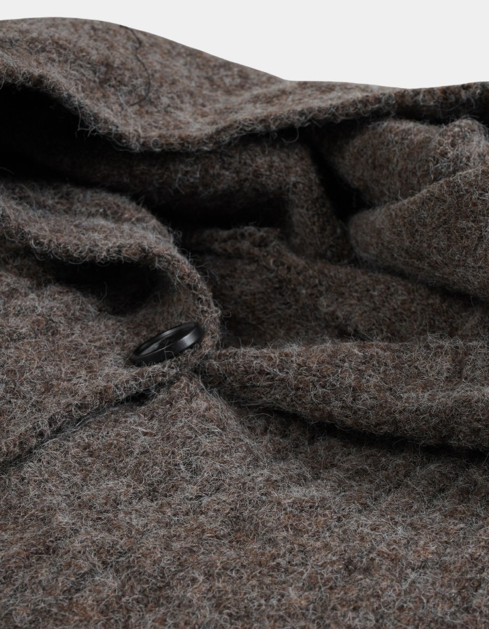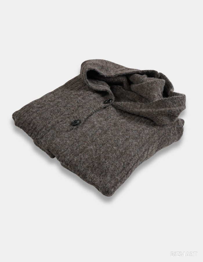 Крупные пуговицы, удобные накладные карманы и объёмный капюшон создают современный и практичный образ.