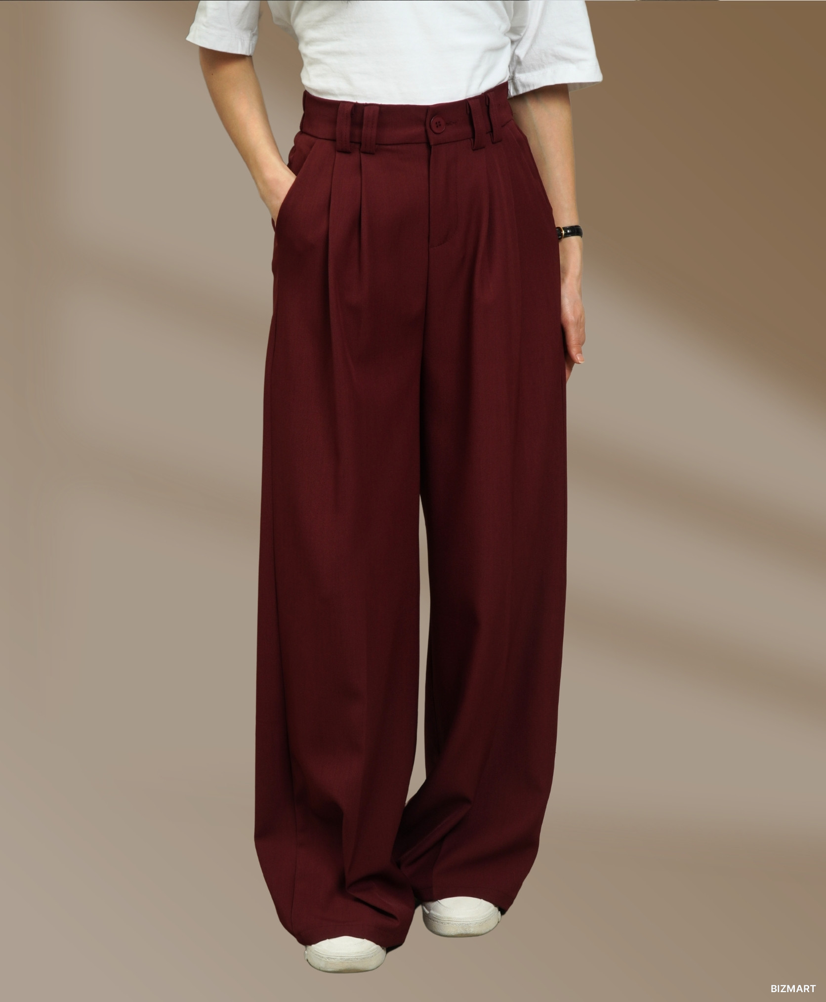 Эти брюки палаццо в бардовом цвете — отличный выбор для тех, кто хочет добавить яркие акценты в свой гардероб, сохраняя при этом стиль и элегантность!