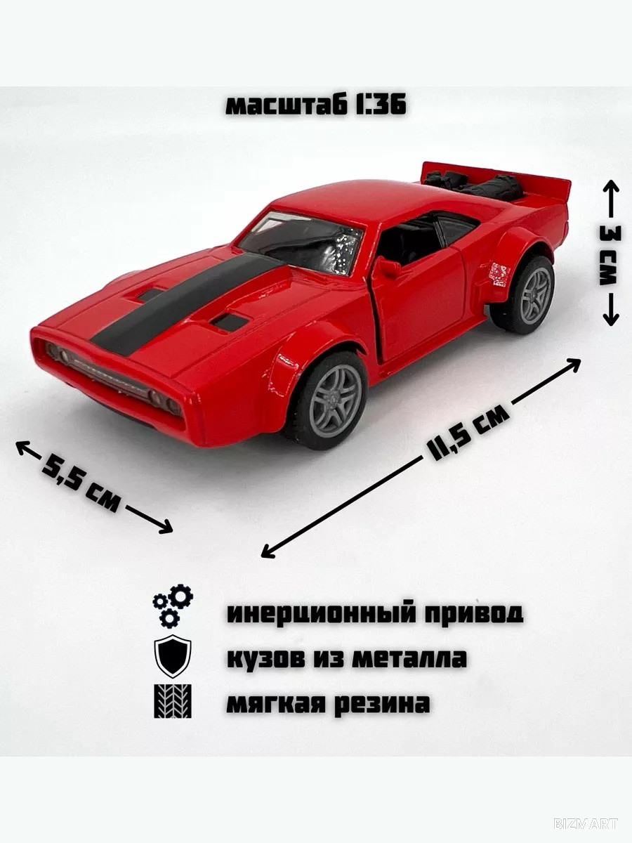 Инерционный механизм: Просто потяните машинку назад и отпустите — она самостоятельно проедет расстояние до 10 метров.