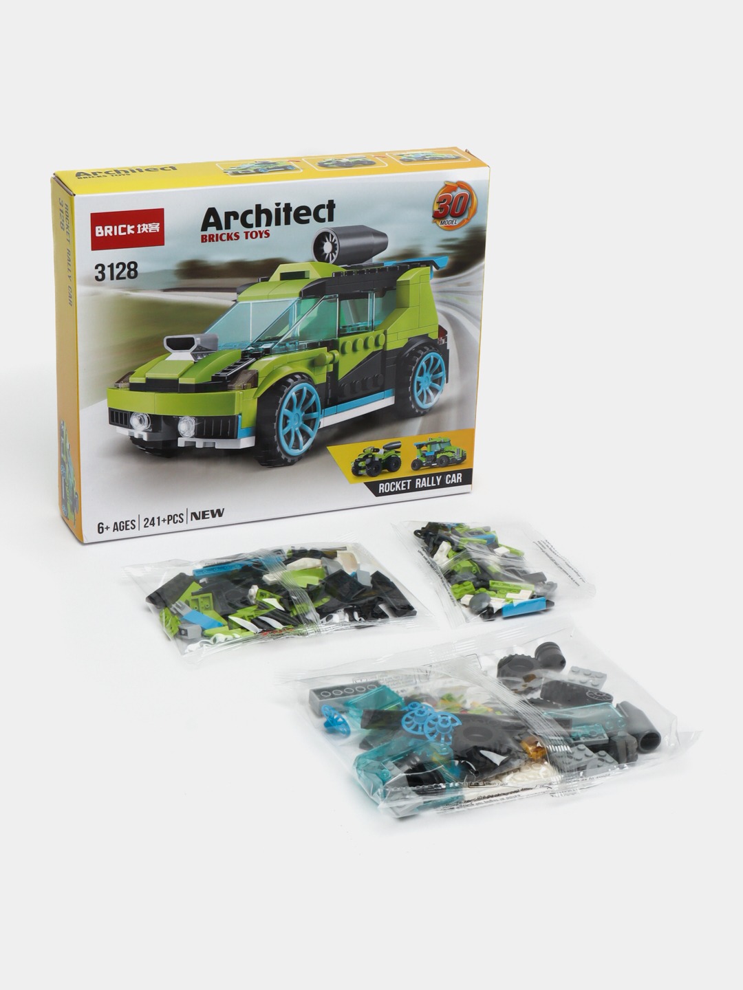 Погрузитесь в мир технического творчества с набором Architect 3128. Этот конструктор позволяет собрать детализированный раллийный автомобиль, который выделяется своим дерзким дизайном: яркий салатовый кузов, контрастные черные элементы и стильные голубые диски.