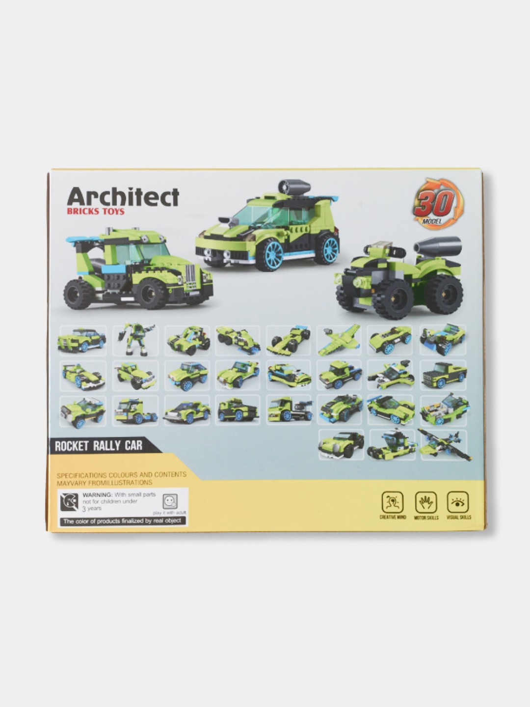 Многофункциональность 3 в 1: Конструктор спроектирован так, что из одного набора деталей можно собрать несколько разных моделей (раллийное авто, квадроцикл или багги), что обеспечивает вариативность игры и долго не надоедает.