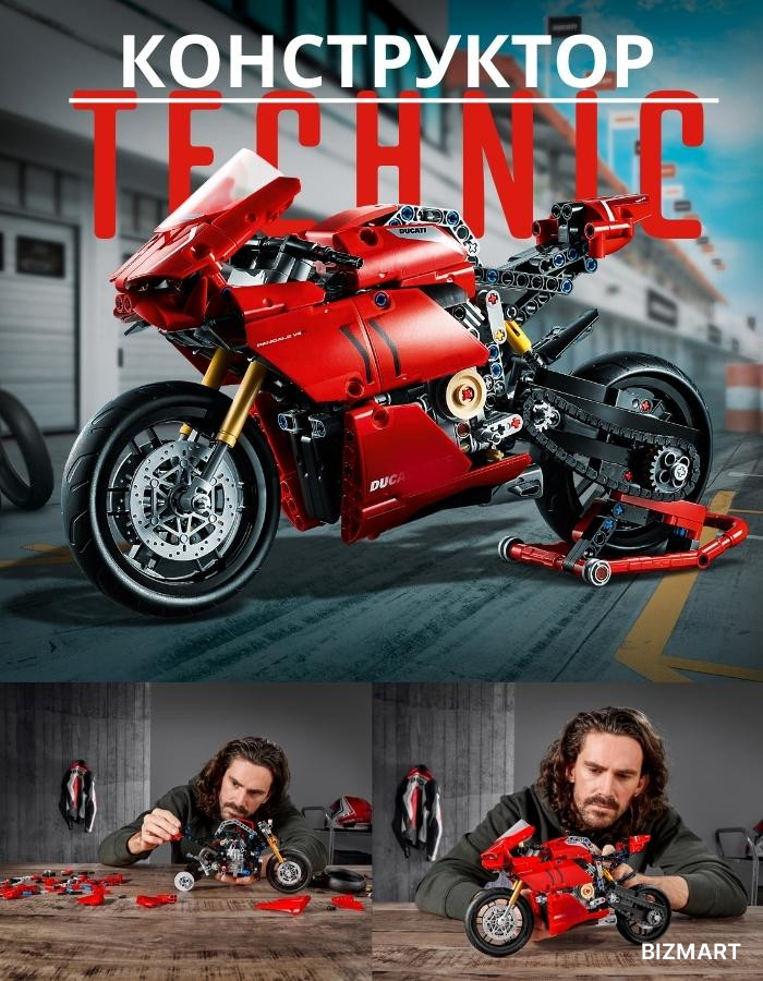 Реалистичный конструктор Technic в виде спортивного мотоцикла. Подвижные механизмы, высокая детализация, сборка для подростков и взрослых.