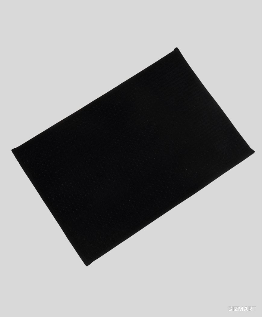 Элегантный коврик для ванной комнаты в классическом чёрном цвете. Мягкая ворсистая поверхность дарит комфорт после душа и приятные ощущения при каждом шаге. Ворс отлично впитывает влагу, сохраняя пол сухим, а надёжная антискользящая основа препятствует скольжению даже на влажной плитке.