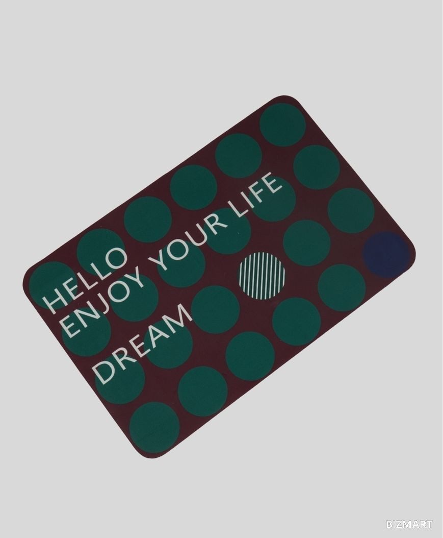 Стильный коврик для ванной комнаты с надписью «Hello, Enjoy Your Life, Dream» и современным дизайном в крупный зеленый горох. Яркий акцентный элемент, который украсит интерьер и поднимет настроение каждый день.