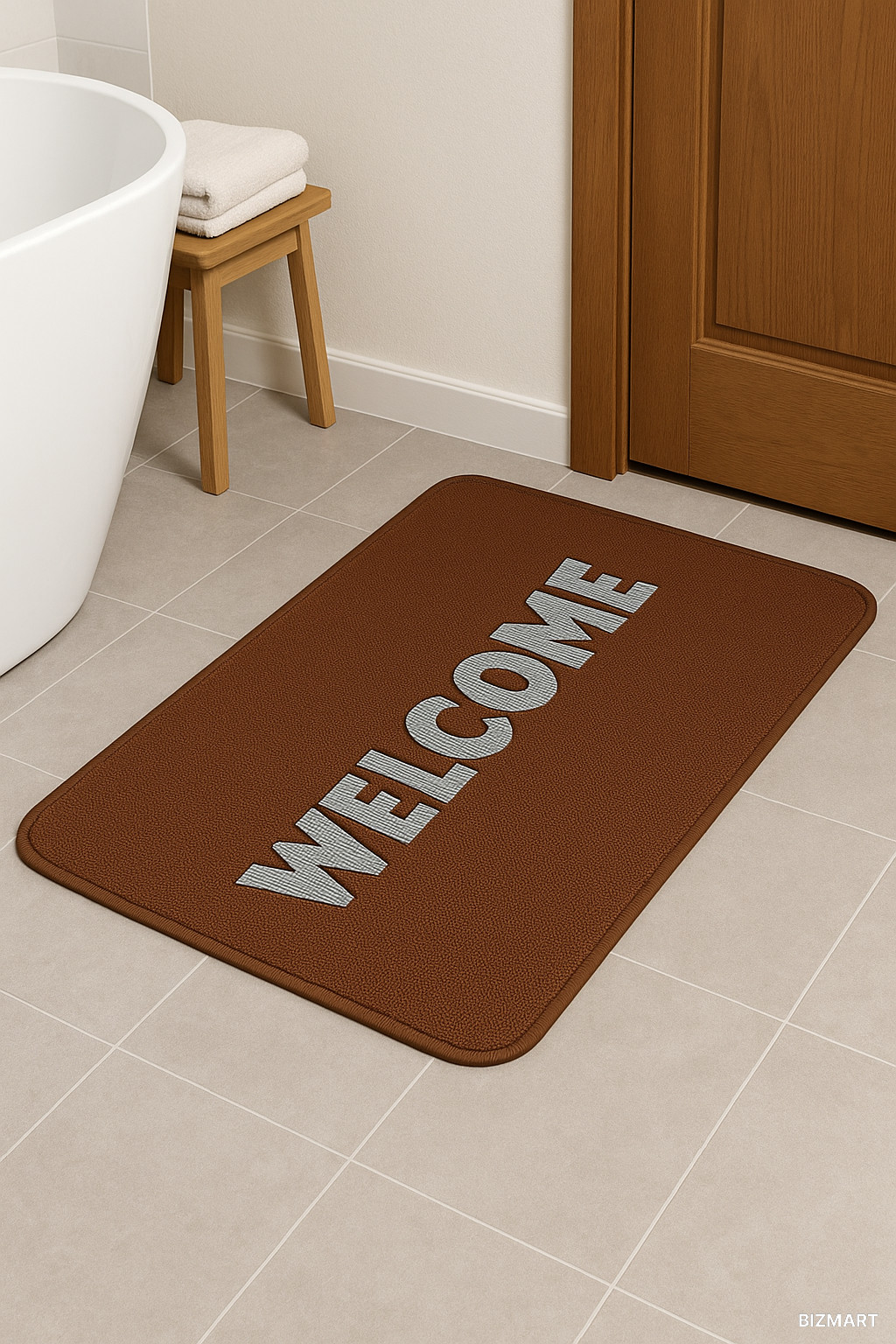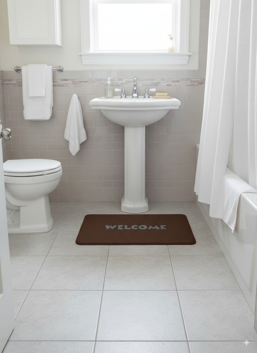 Коврик для ванны WELCOME в коричневом цвете с надписью отлично подойдёт для ванной комнаты или прихожей. Он защищает пол от влаги, легко очищается и устойчив к износу. Лаконичный дизайн гармонично впишется в интерьер, создавая уют и аккуратность.
