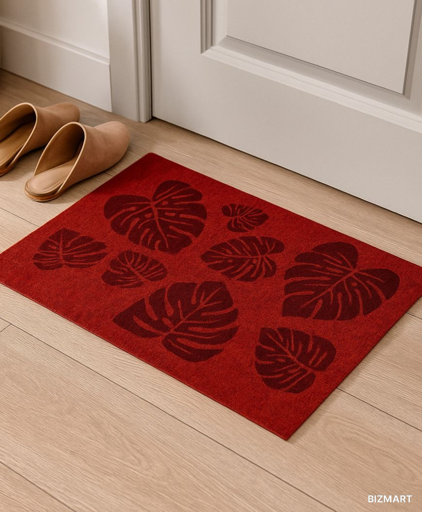 Яркий придверный коврик с рельефным узором в виде листьев добавит уюта и стиля вашему дому. Красный цвет делает его заметным акцентом, а фактурный рисунок смотрится современно и аккуратно. Коврик надежно задерживает грязь и влагу, легко чистится и подходит для использования как в квартире, так и на даче или в офисе. Размер 38×58 см оптимален для установки у входной двери.