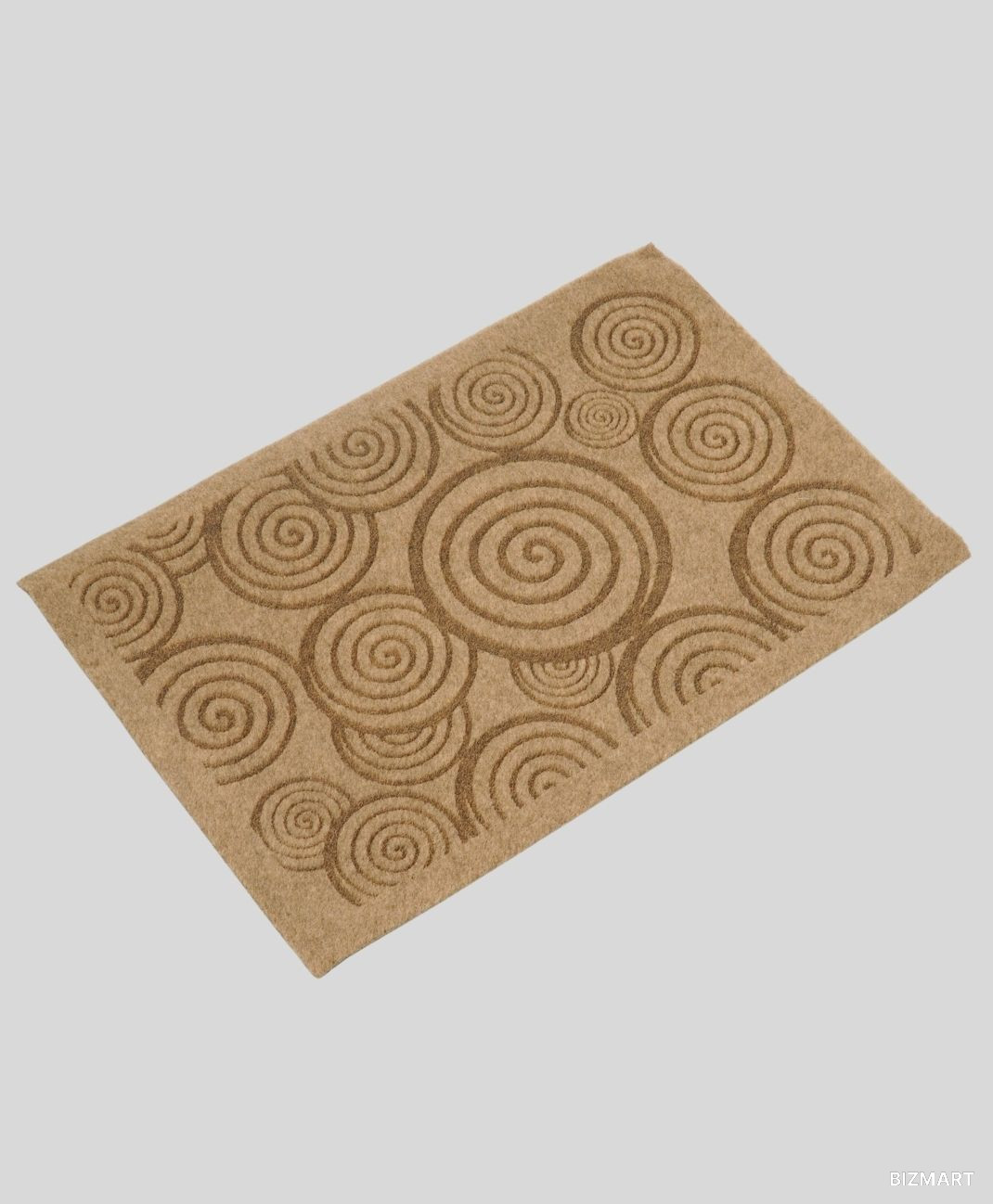 Придверный коврик выполнен из прочного износостойкого материала, который эффективно задерживает грязь и влагу. Стильный дизайн с рельефным узором в виде спиралей в бежевом цвете гармонично впишется в интерьер прихожей или офиса. Размер 38×58 см оптимален для установки у входной двери. Коврик легко чистится, быстро сохнет и долго сохраняет привлекательный внешний вид.