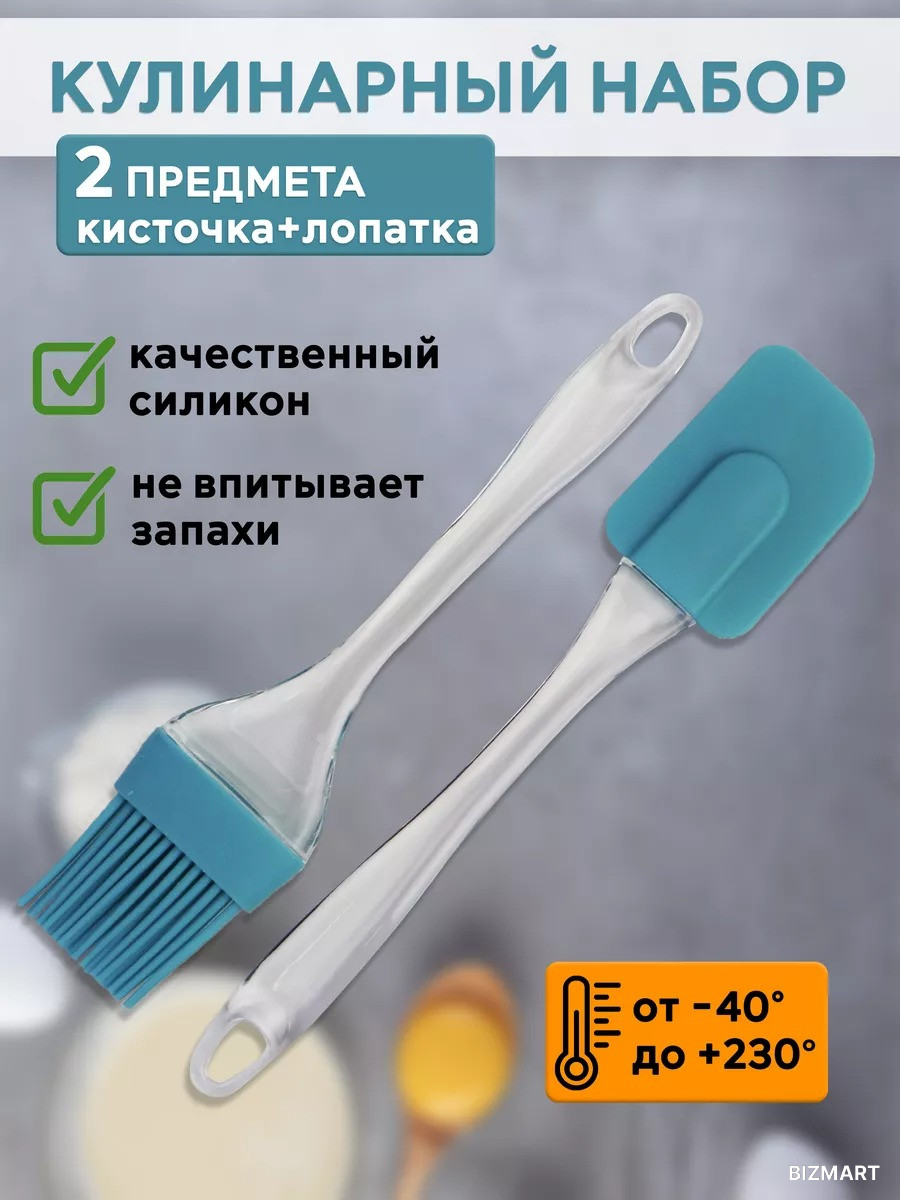 Удобный и стильный комплект для кухни, включающий кулинарную кисточку и лопатку. Идеально подходит для приготовления, замешивания и смазывания блюд.
