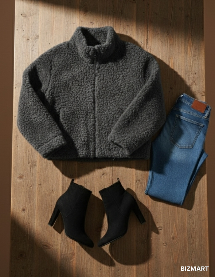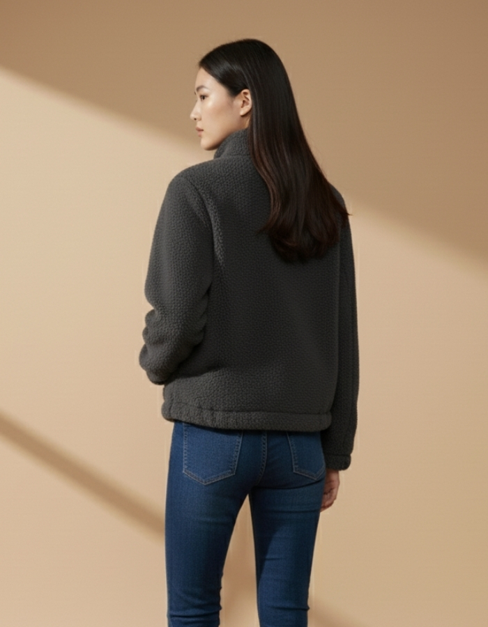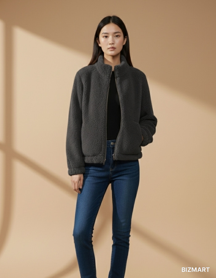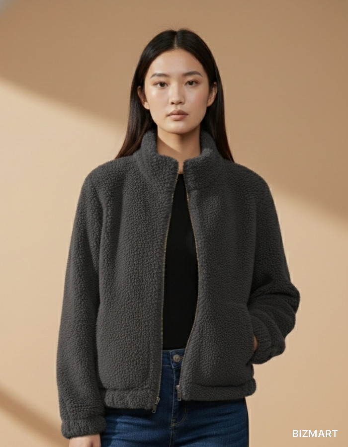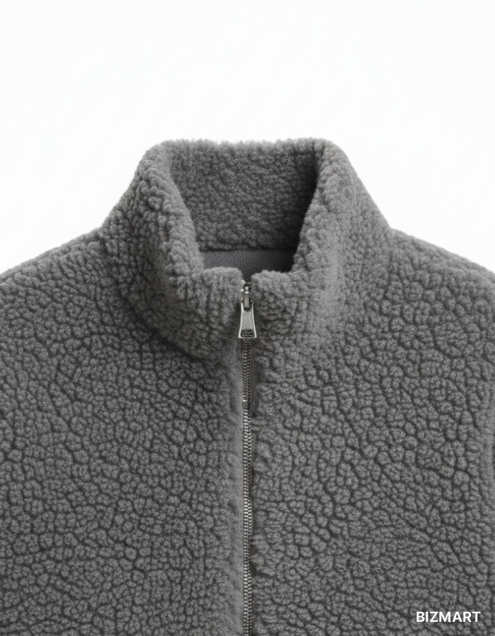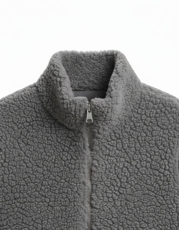 Тёплая и мягкая куртка тедди в универсальном сером цвете. Изготовлена из плотного пушистого материала, который отлично сохраняет тепло и обеспечивает комфорт даже в холодную погоду. Модель застёгивается на удобную молнию, а два боковых кармана делают её практичной и удобной для повседневного использования.