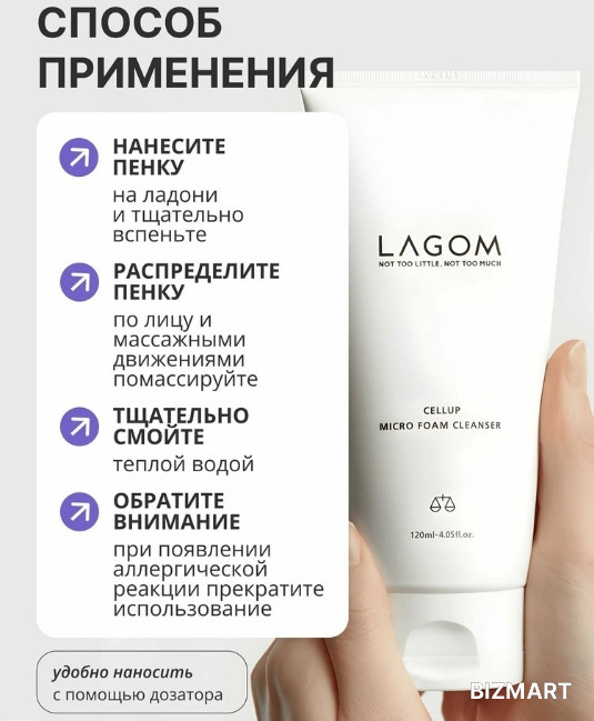 LAGOM CELLUP Micro Foam Cleanser: Увлажняющая Гель-Пенка для Глубокого Очищения и Тонизирования, 120 мл