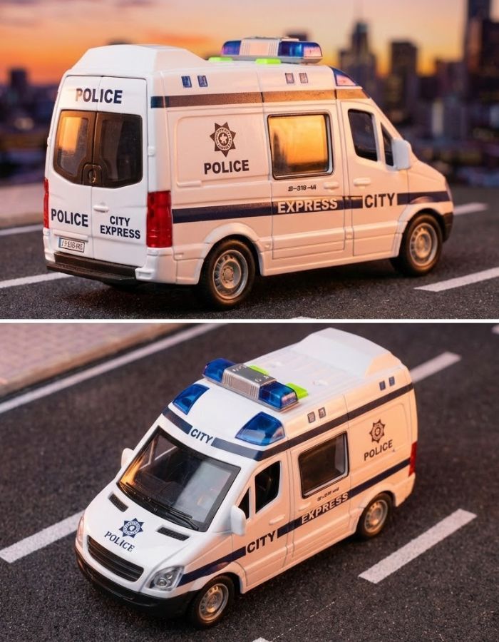 Срочный вызов? Отряд полиции уже в пути! Этот классный полицейский микроавтобус станет незаменимым помощником в игрушечном городе. Реалистичный дизайн и строгая служебная окраска помогут ребенку почувствовать себя настоящим стражем закона.