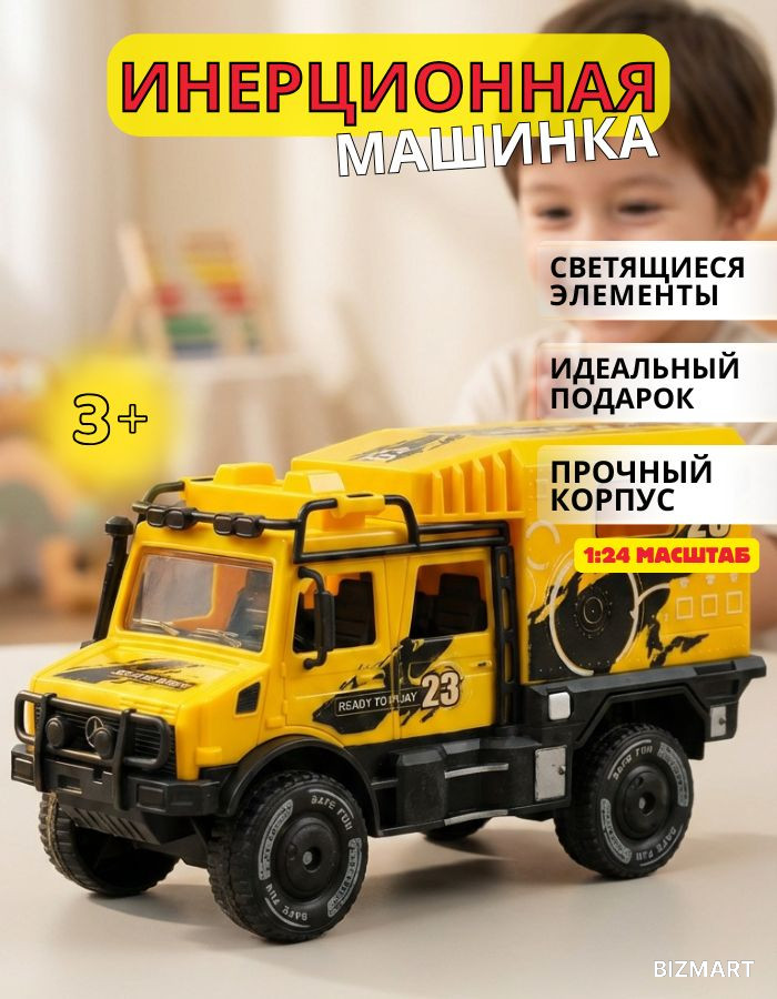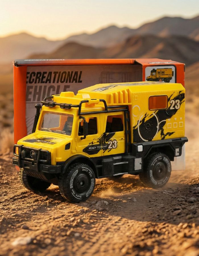 Ваш ребенок любит истории про дальние страны и сложные маршруты? Этот желтый экспедиционный трак готов покорять пустыни и леса! Реалистичный дизайн специального транспорта для туризма вдохновит малыша на новые игровые сюжеты.