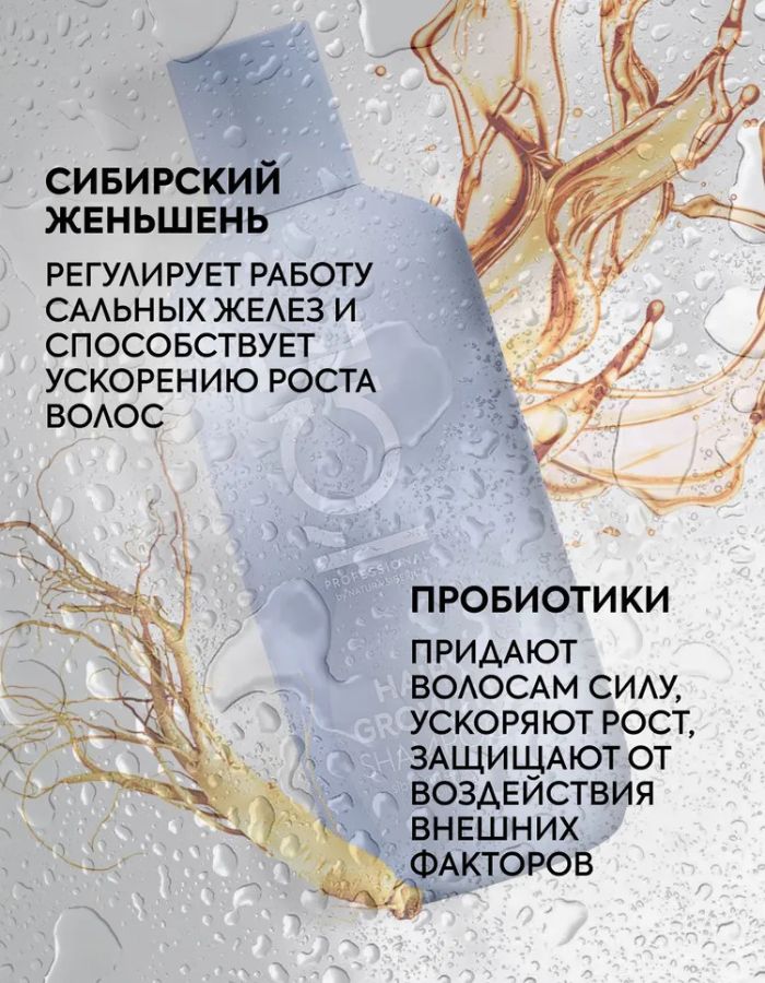 Ухаживающее проф средство содержит комплекс фруктовых AHA (аха/ана) и BHA (бха) кислот. Гликолевая, молочная и салициловая кислоты обладают обновляющим и себорегулирующим свойствами. Сибирский женьшень также регулирует работу сальных желез и способствует ускорению роста волос. Пробиотики придают прядям силу, защищают от воздействия внешних факторов.