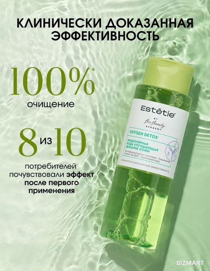 Мягкая мицеллярная вода OXYGEN DETOX от Estetie (Эстети) с запатентованным детокс-комплексом OXYGESKIN® — универсальное средство для глубокого очищения от загрязнений и снятия макияжа. Этот уникальный продукт не только эффективно удаляет остатки SPF, водостойкого макияжа с глаз и губ, но и наполняет кожу кислородом, сохраняя целостность кожного барьера, не вызывая сухости и дискомфорта. Благодаря кислородному детокс-комплексу на основе кислорода и спирулины балансирует клеточный метаболизм, улучшает дыхание кожи и увлажняет ее, ваша кожа восстанавливает свою адаптивную способность преодолевать стресс, что особенно актуально в условиях загрязненной окружающей среды. В составе средства для снятия макияжа присутствует экстракт горного шалфея, известный своими мощными антиоксидантными свойствами. Этот компонент помогает сохранять молодость и красоту кожи, борясь со свободными радикалами и придавая ей здоровое сияние. Биоцевтический экстракт способствует поддержанию свежести, упругости и тонуса кожи.