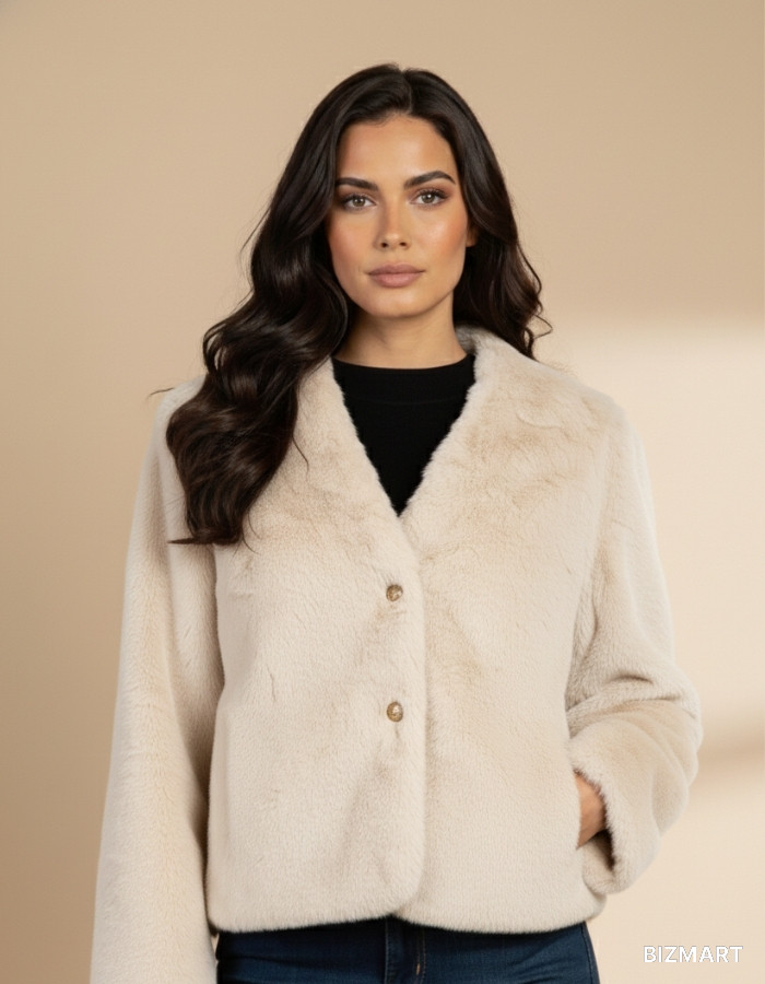 Стильная женская эко-шуба в универсальном бежевом оттенке. Выполнена из мягкого и приятного на ощупь искусственного меха, который хорошо сохраняет тепло и смотрится дорого. Лёгкая, уютная и комфортная — идеальный вариант для холодного сезона.