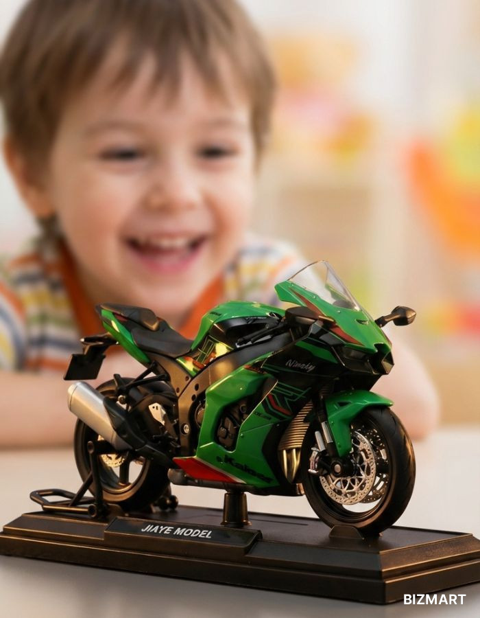 Подарите ребенку (или себе!) не просто игрушку, а миниатюрную копию одного из самых быстрых мотоциклов в мире. Эта модель от Jiaye Model выполнена с поразительной точностью: от агрессивного обтекаемого корпуса в фирменном ярко-зеленом цвете до реалистичной выхлопной системы и проработанных дисков.