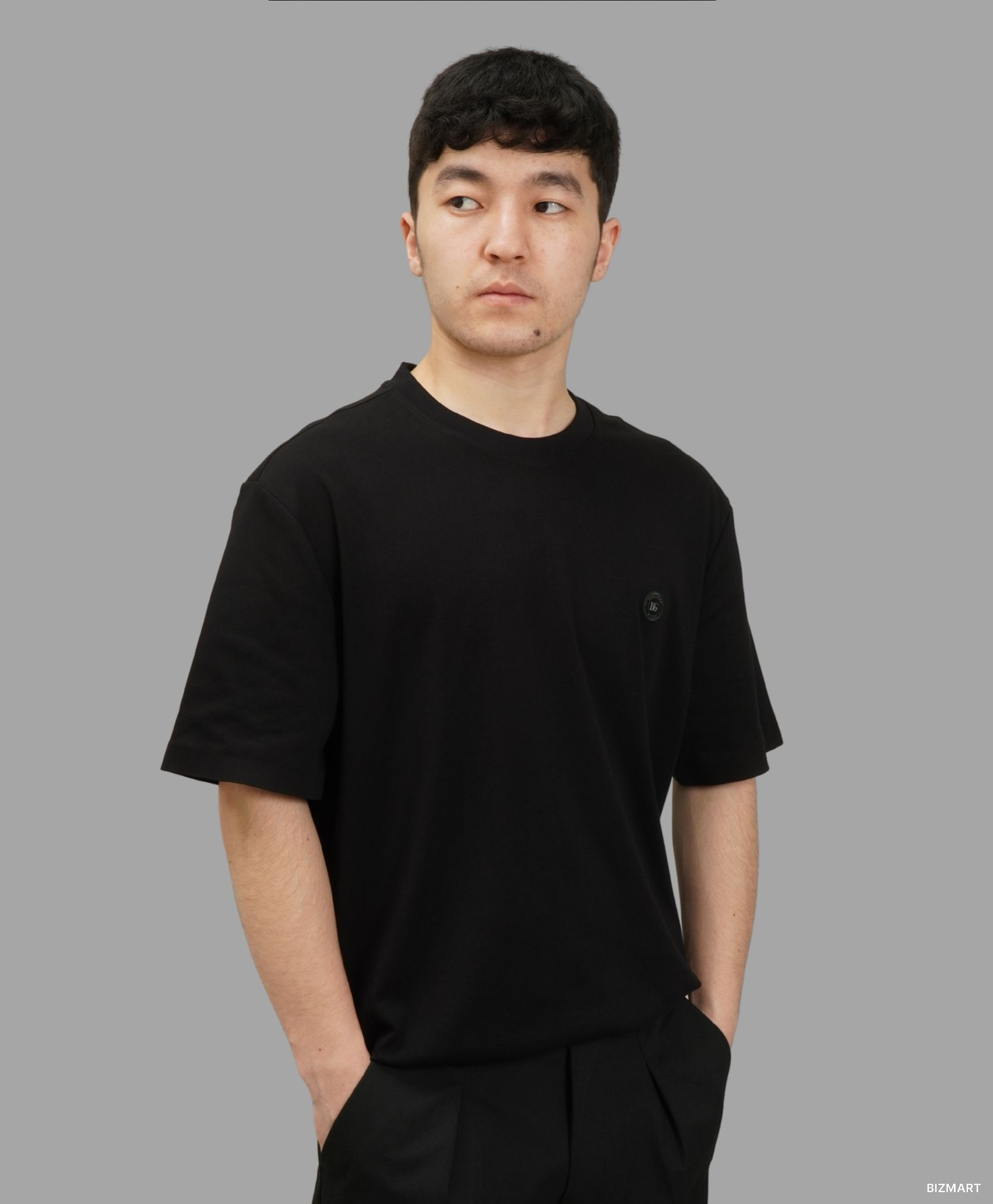 Минималистичный акцент в виде небольшого круглого логотипа на груди придаёт стиль и узнаваемость, не перегружая образ.