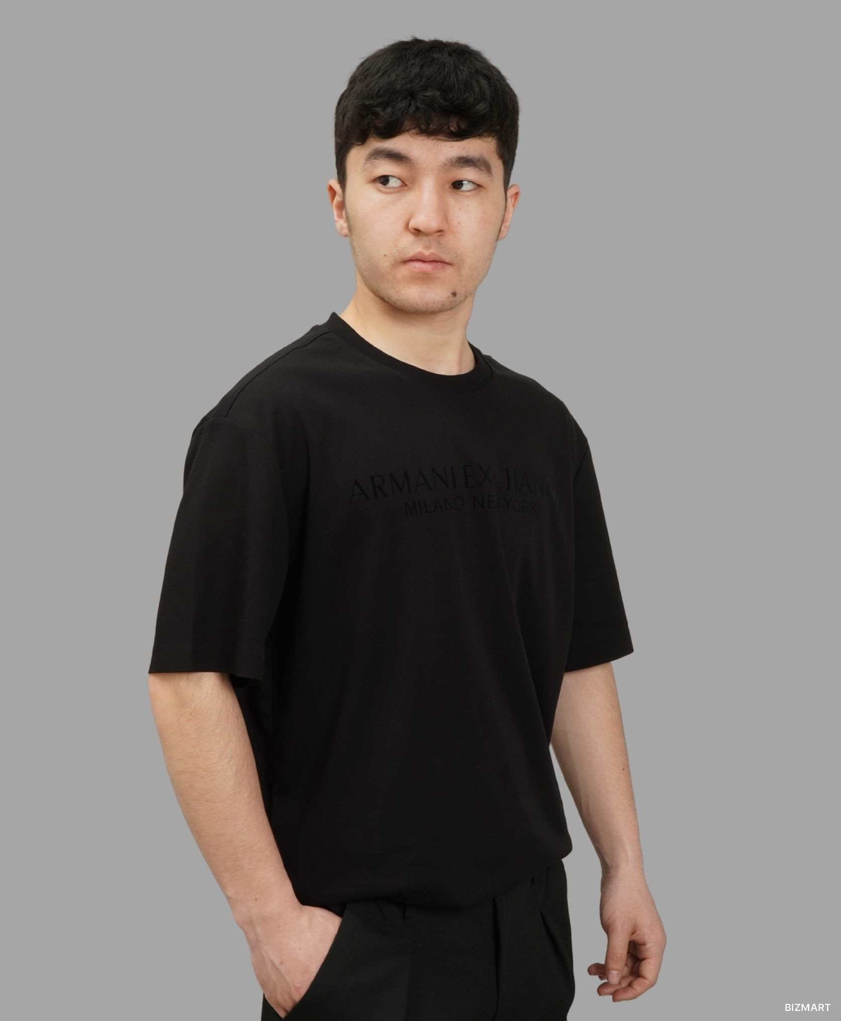 Эта чёрная футболка с фирменной надписью ARMANI EXCHANGE MILANO / NEW YORK — выбор тех, кто ценит сдержанный шик и безупречное качество. Идеально подойдёт для создания как повседневных, так и более стильных образов.